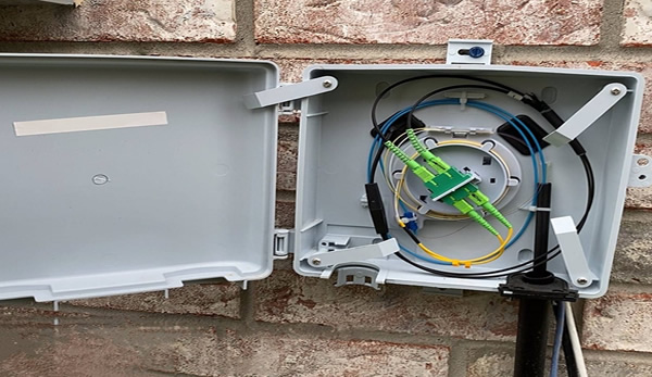 Drop to Home Installation is when workers run a fiber cable from a pole outside to a house. They also put a small box (called a Network Interface Device) on the side of the house to connect the cable. The cable is usually placed in the same area as the electrical wires on the property.