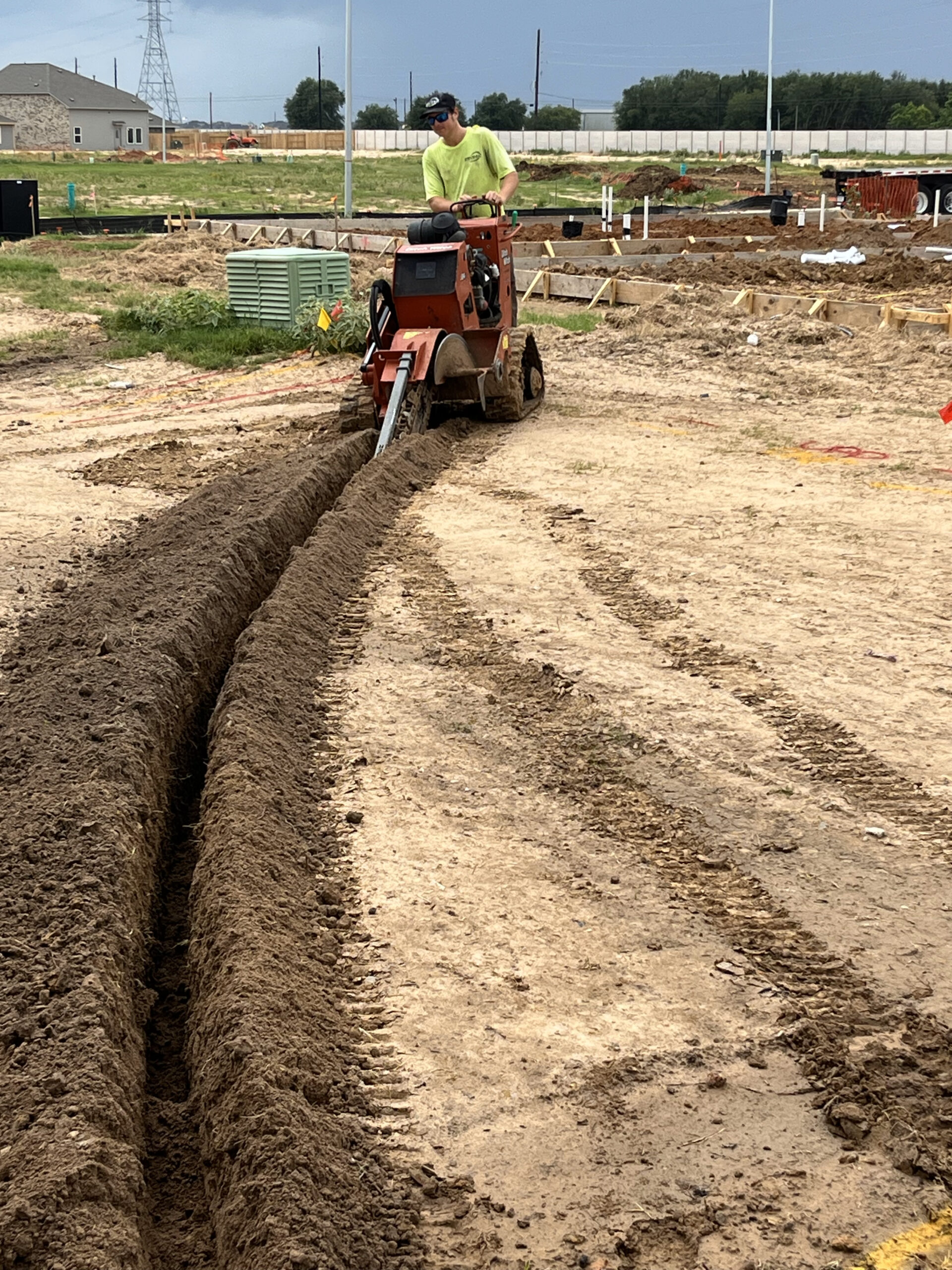 Trenching is when a narrow, deep hole is dug in the ground to put in things like water pipes, sewer lines, electrical cables, or internet cables. This can be done by hand or with machines, and it’s used a lot in construction and utility work.